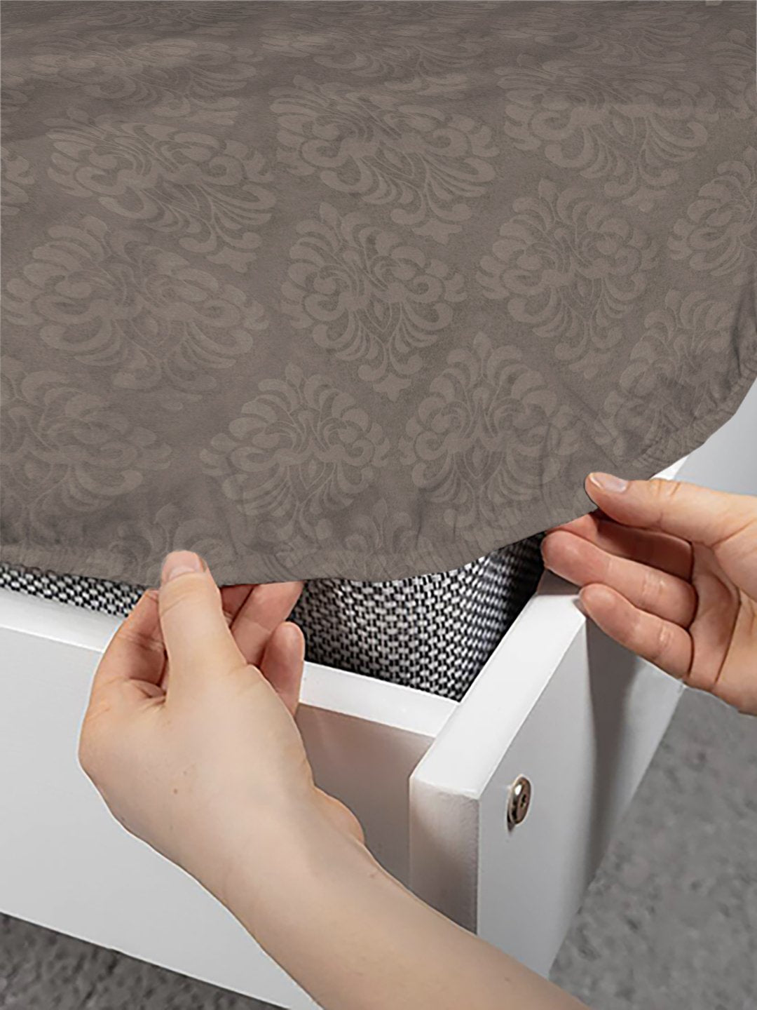Brown Floral Embossed Cotton Blend Fitted Fitted Single Bedsheet with Pillow Cover