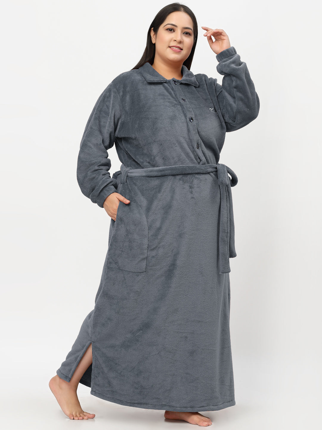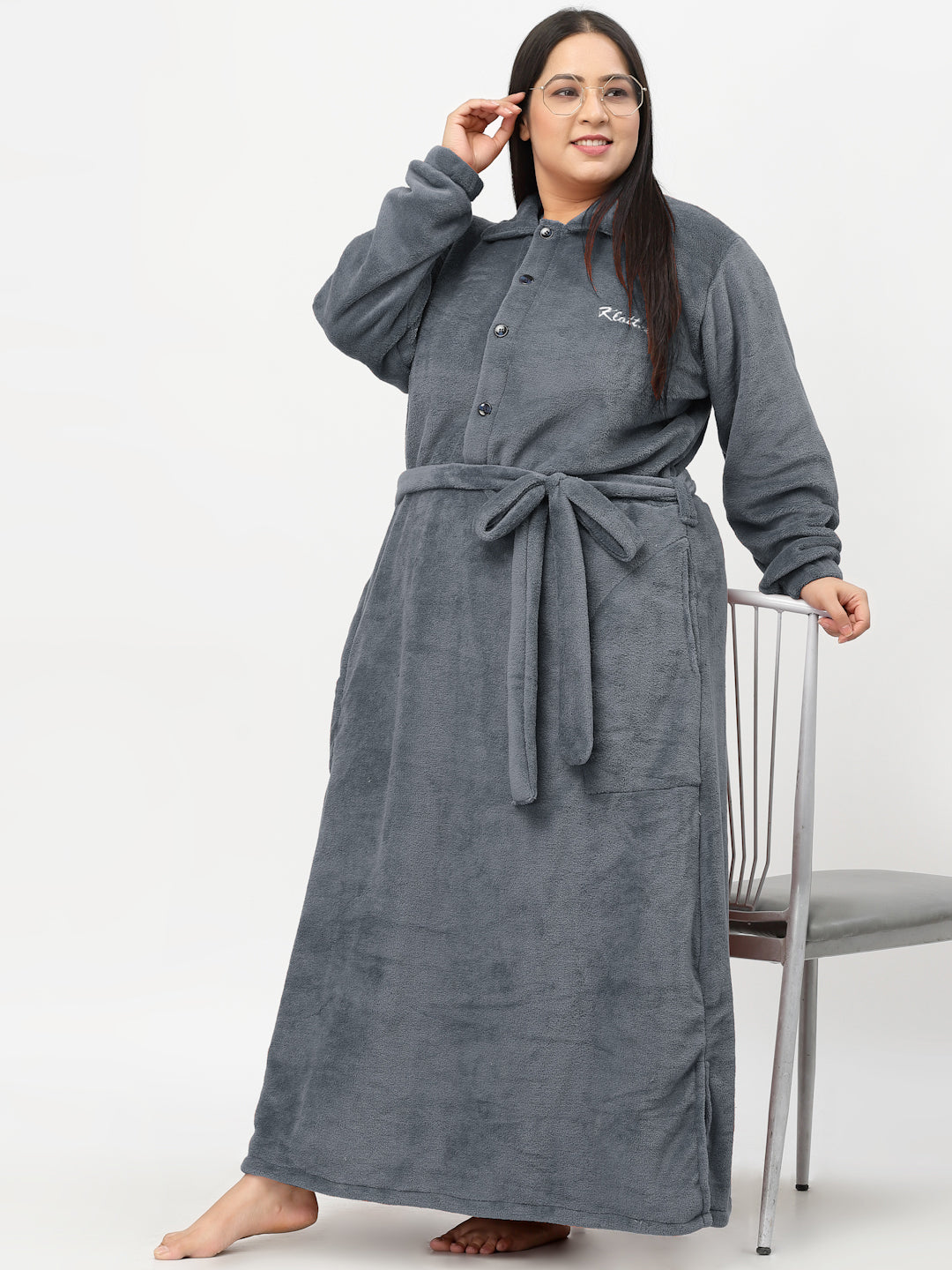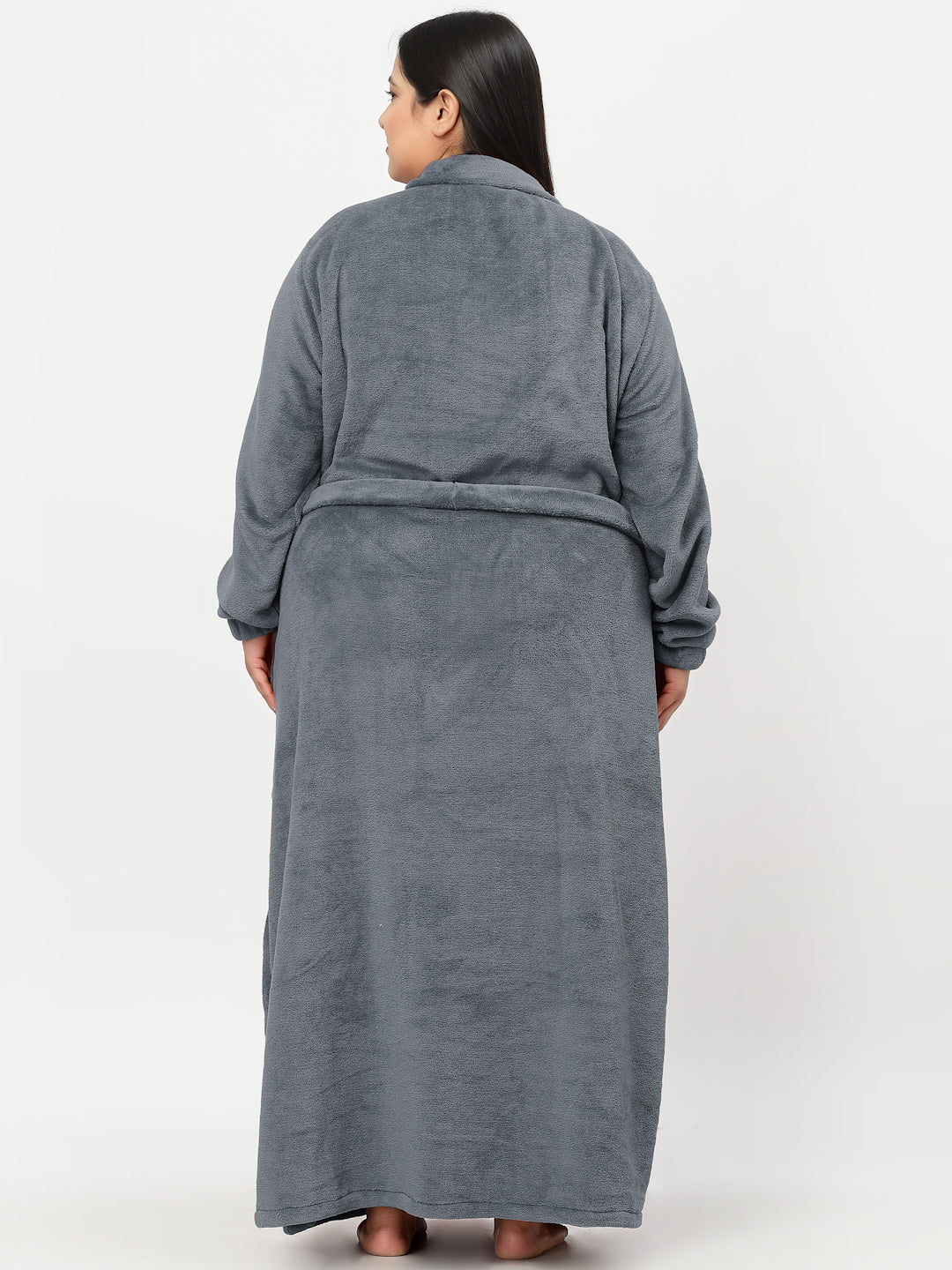 Set Content-Klotthe Women Grey Solid Bath Robe With Belt