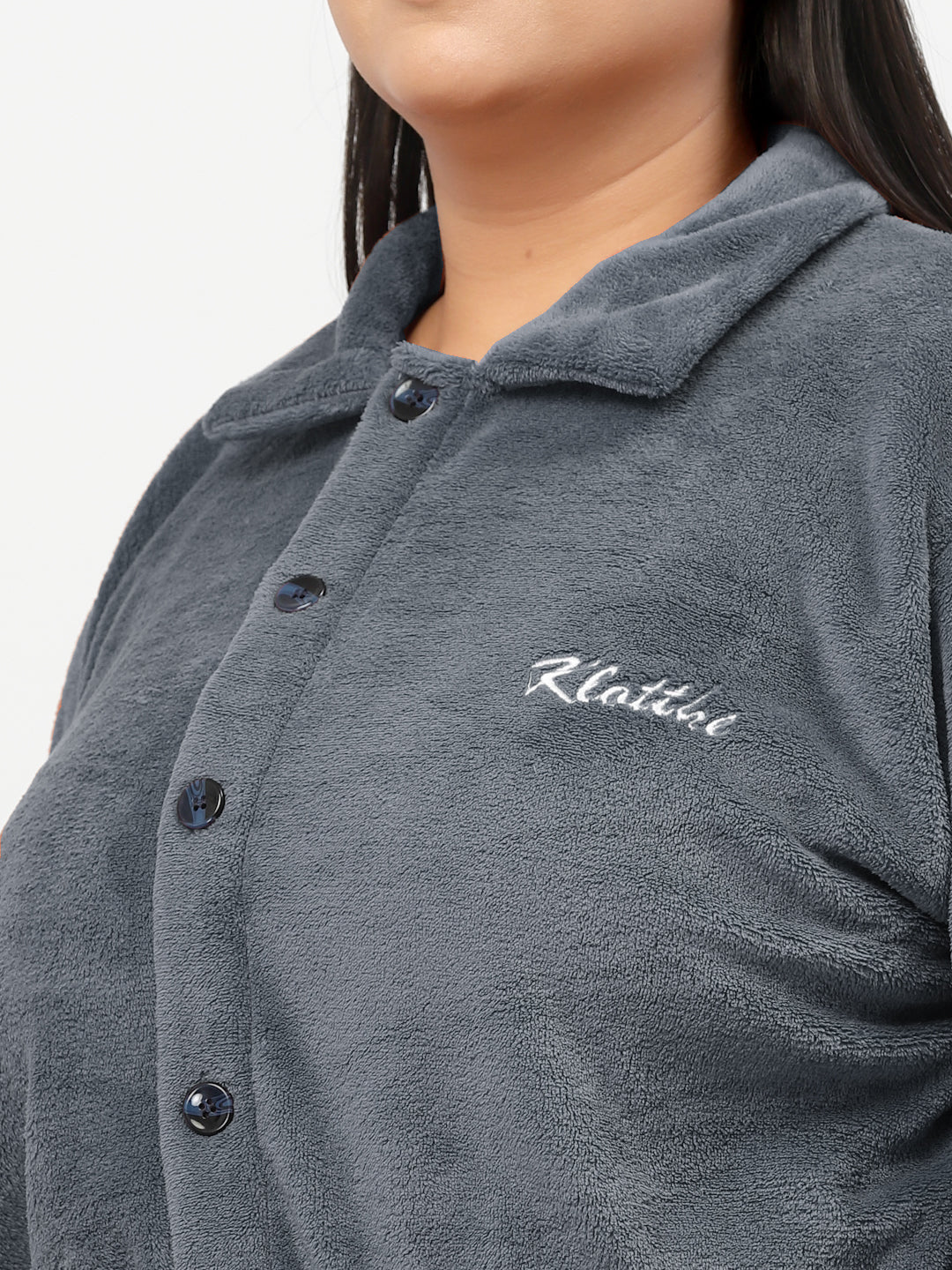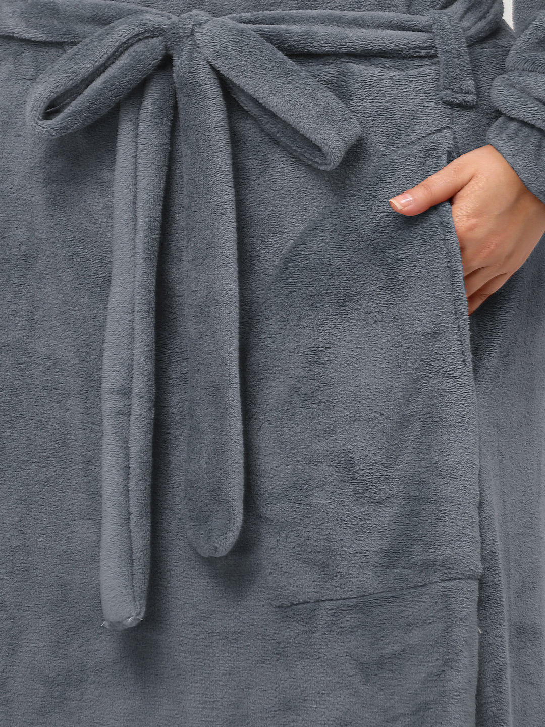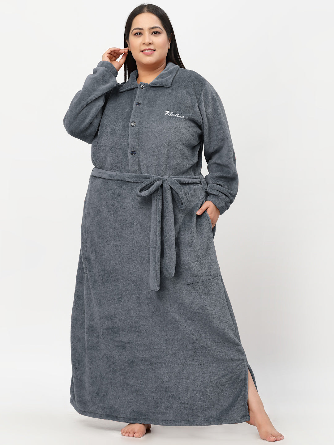 Set Content-Klotthe Women Grey Solid Bath Robe With Belt