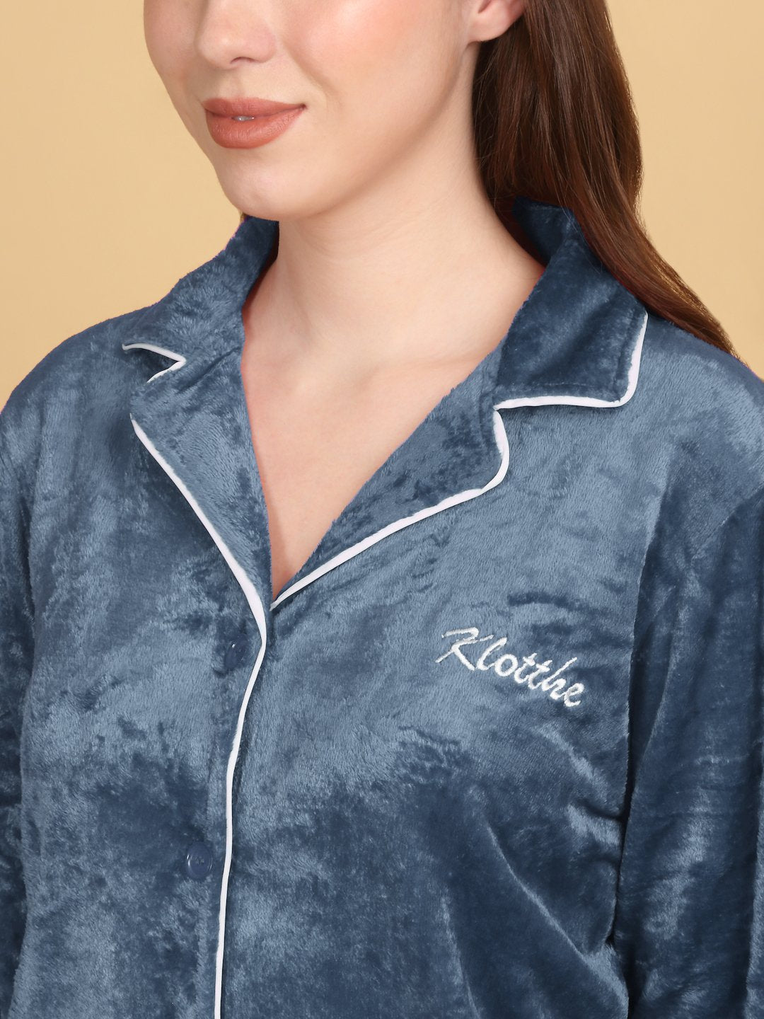 Klotthe Women Turquoise Solid Woolen Night Suit