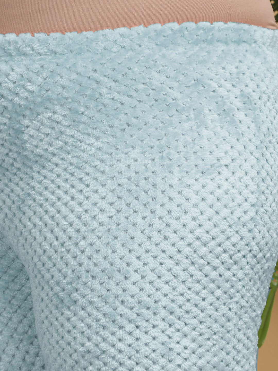 Women Turquoise Solid Hooded Woolen Night Suit